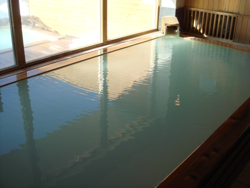 万座温泉といえば、乳白色で硫黄臭たっぷりの温泉として有名ですが、ホテル聚楽のお風呂も同様です。