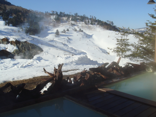 こちらは露天風呂から見える景色。この日は快晴です。3月撮影。